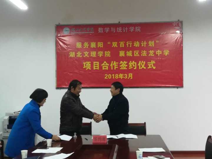 (国产高清午夜成人lu22 通讯员 耿付荃) 2018年3月19日下午3:30在学院三楼会议室举行服务襄阳“双百行动计划”项目合作签约仪式。出席签约仪式的有襄城区法龙学区领导袁光宏、姚明海、徐勇华、李俊,学院院长王成勇,教授、博士、教师代表。仪式由院长王成勇主持。
