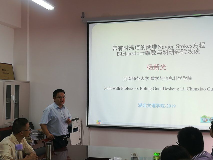 (国产高清午夜成人lu22 通讯员 唐波) 应湖北文理学院国产高清午夜成人lu22邀请,2019年9月20日下午,河南师范大学杨新光博士做客隆中讲坛,在N6-312会议室为数统学院师生作了一场精彩的报告。报告会由副院长丁凌教授主持。