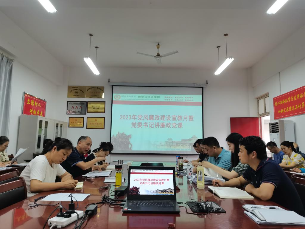 刘浩要求,要深入学习习近平总书记关于纪律建设的重要论述,加强党章党规党纪学习宣传教育,通过中心组学习、支部主题党日活动、领导班子成员带头讲廉政党课等形式扎实推进党风廉政建设宣教月活动深入开展。要注重结合,把宣教月活动与主题教育结合起来,紧扣主题主线,对照安排部署,采取有力措施不折不扣完成“规定动作”,创新“自选动作”。要积极营造浓厚的宣传教育氛围,积极营造良好政治生态和学院发展环境,打造让师生满意的“清廉数统学院”,推动学院党风廉政建设取得新的成效。