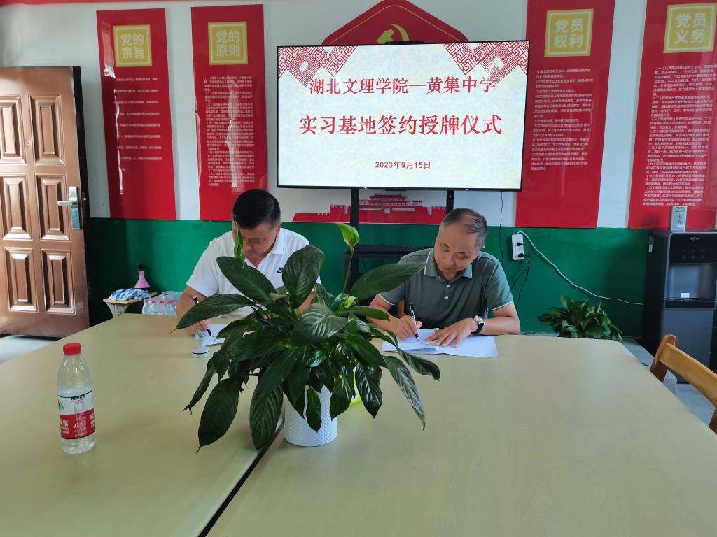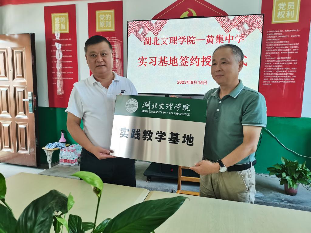 (国产高清午夜成人lu22 通讯员 耿付荃)9月15日,湖北文理学院国产高清午夜成人lu22党委书记刘浩一行到襄州区黄集镇中心学校举行实践教学基地签约授牌仪式。襄州区黄集镇中心学校党总支书记、校长陶轶琼等领导出席签约授牌仪式。