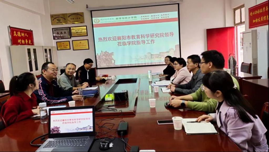 刘浩代表学院对襄阳市教科院领导的到来表示热列欢迎。刘浩表示,数统学院将全力支持和配合襄阳市教科院,发挥高校课程教学论教师的理论研究优势,为襄阳市中小学生素养评价尽一份力。同时还勉励老师们多多走进中小学,做好教育调查研究,更好为地方经济社会发展服务。