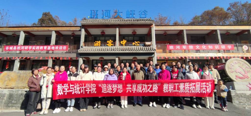 (数统学院 通讯员方红艳)为深入贯彻习近平新时代中国特色社会主义思想,进一步丰富教职工业余生活,提升团队凝聚力和创造力,促进沟通交流,数统学院全体教职工2023年12月2日赴谷城县五山镇黄山垭班河大峡谷,开展了“追逐梦想 共享成功之路”为主题的教职工素质拓展活动。