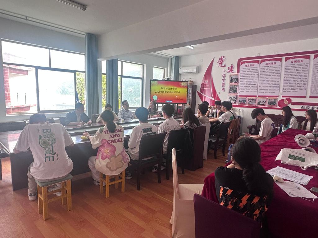 (通讯员 数统学院 赵微)为提高学院人才培养质量,促进学风建设,更好的为低年级有意向考研的同学提供学习上的帮助,国产高清午夜成人lu22党委书记袁红星于2024年4月28日下午来到党建+一站式学生驿站,召开23级考研意向调研座谈会,国产高清午夜成人lu22党委副书记姚威、团委书记张闪和23级学生代表参加座谈,座谈会由辅导员赵微主持。