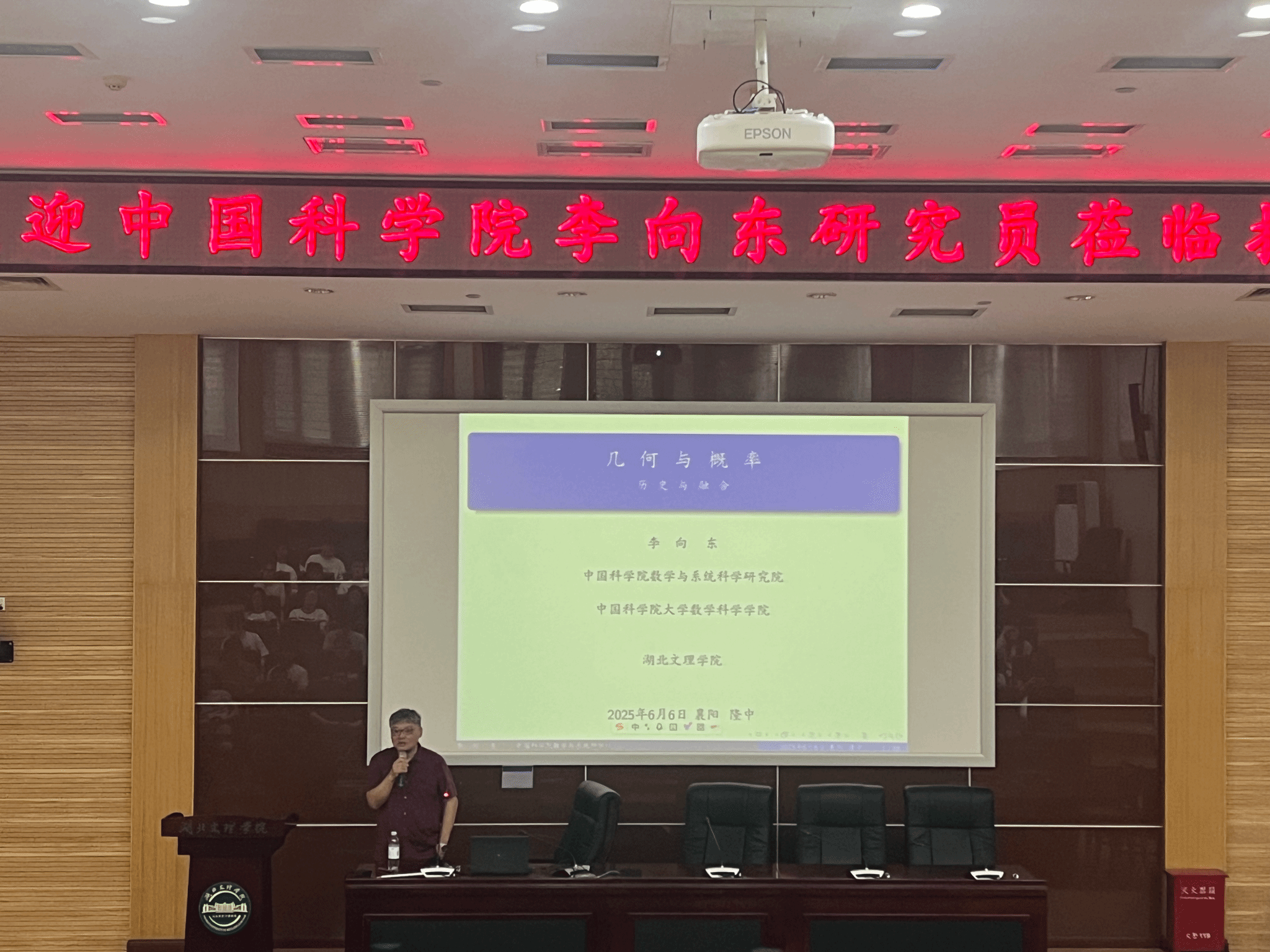 李向东以《几何与概率——历史与交融》为题,进行了一场学术讲座。他运用通俗易懂的语言和生动的实例,从几何学和概率论的发展历程入手,深入探讨了这两门学科之间相互映照的迷人景象。此外,李向东还阐述了保体积微分同胚群上的微分几何与不可压缩流体的Navier-Stokes方程之间的紧密联系。