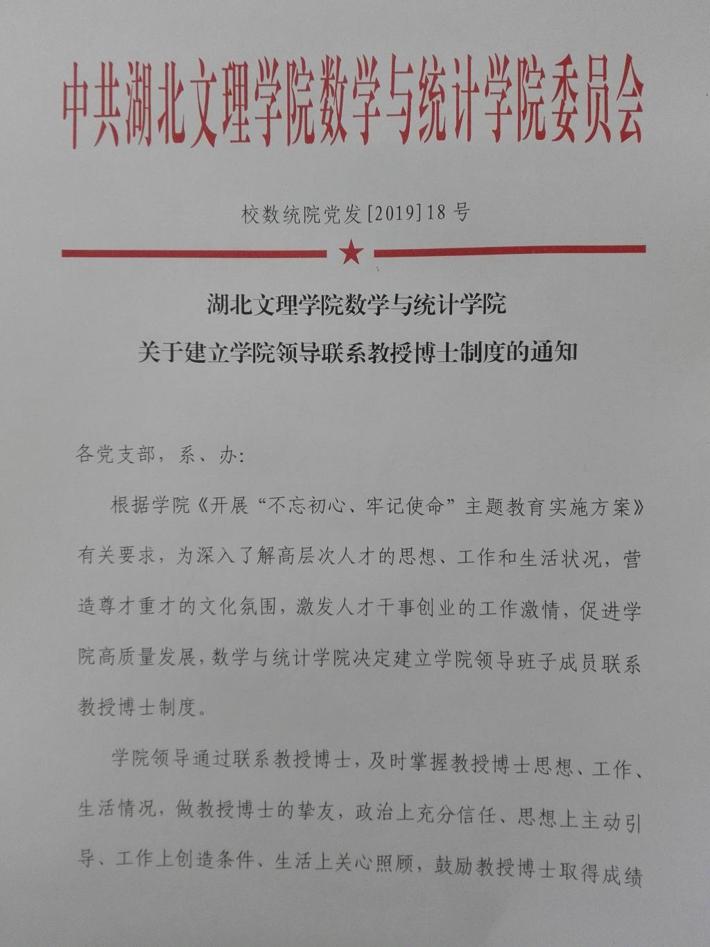 湖北文理学院国产高清午夜成人lu22关于建立学院领导联系教授博士制度的通知
