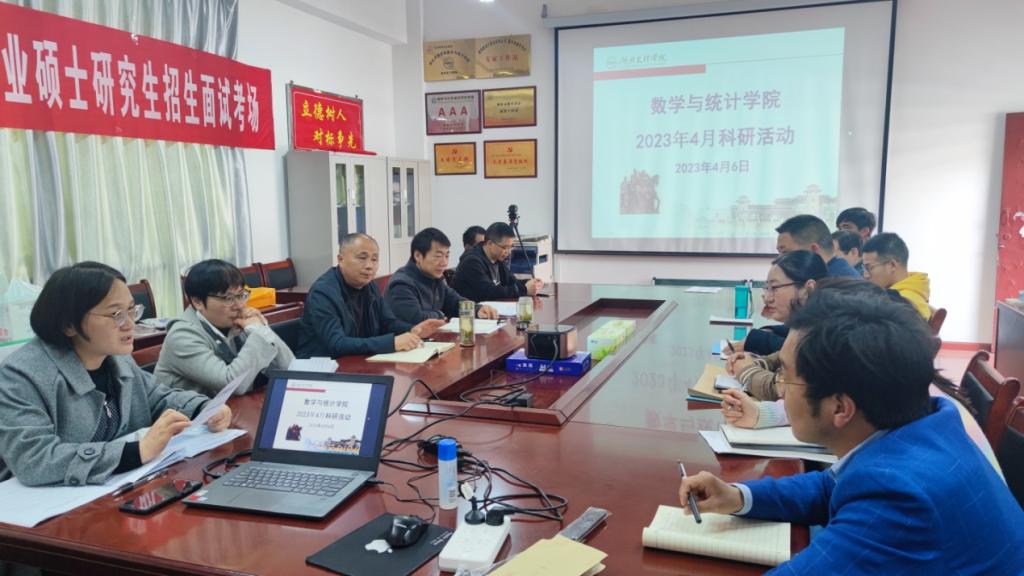 (数学与与统计学院 通讯员 卢方芳)4月6日,学院召开4月份科研活动。学院党委书记刘浩、院长王成勇、科研团队负责人、部分团队成员及新进教师参加了活动。活动由学院副院长丁凌主持。
