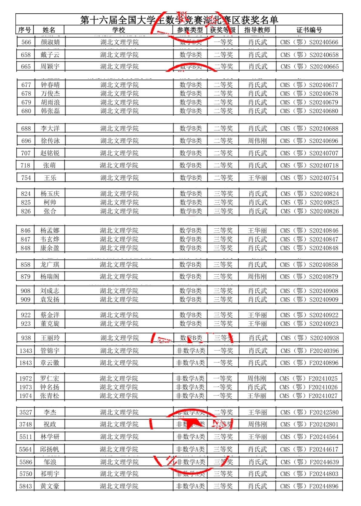 我校学子在第十六届全国大学生数学竞赛取得优异成绩