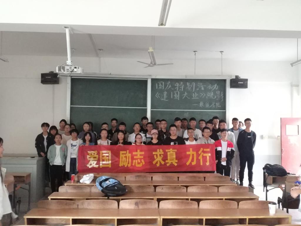 (国产高清午夜成人lu22 通讯员 陆文科)为激发学生爱国热情、丰富校园文化生活、引导激励学生努力学习、争先创优。10月7日下午,数统学院17级、18级学生2点半在北区六栋教学楼301教室组织观影《建国大业》。
