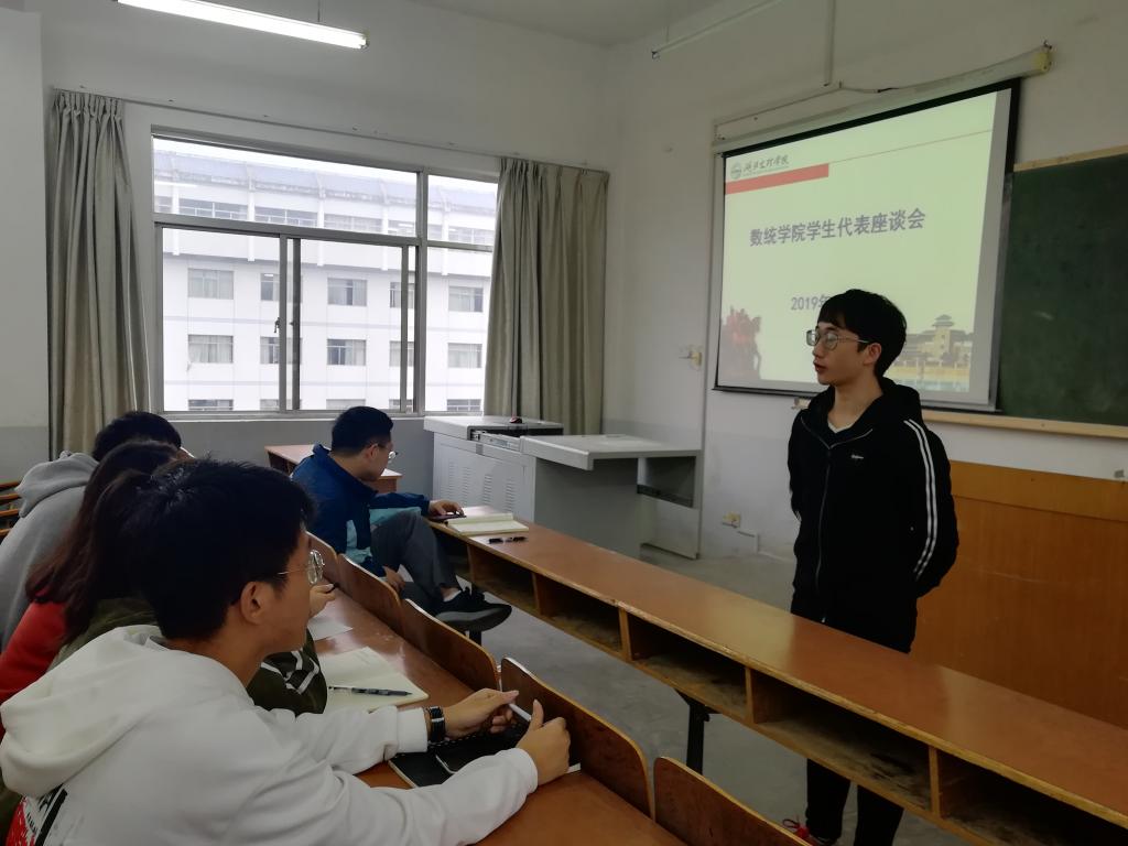 (数统学院通讯员江绍彦)2019年10月10日下午数统学院在学校北区六栋302召开以“不忘初心,牢记使命”为主题的学生代表座谈会,就学生学习和生活等各方面的问题予以征求并解决。数统学院党委副书记姚威,副院长张旻嵩,学工办主任张亿瑞出席本次会议。