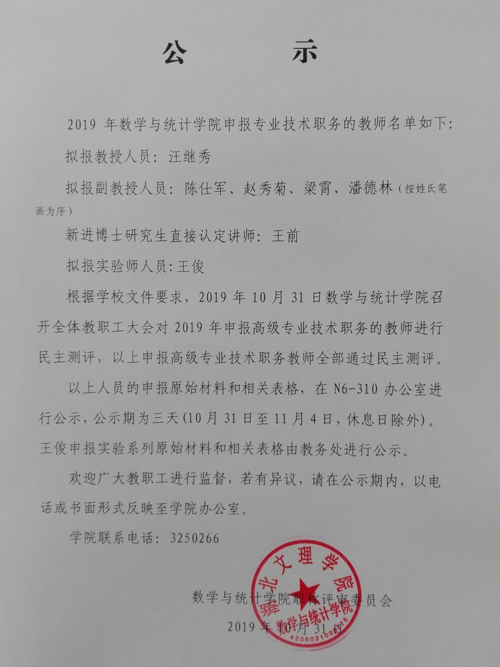 国产高清午夜成人lu222019年教师系列申报职称公示